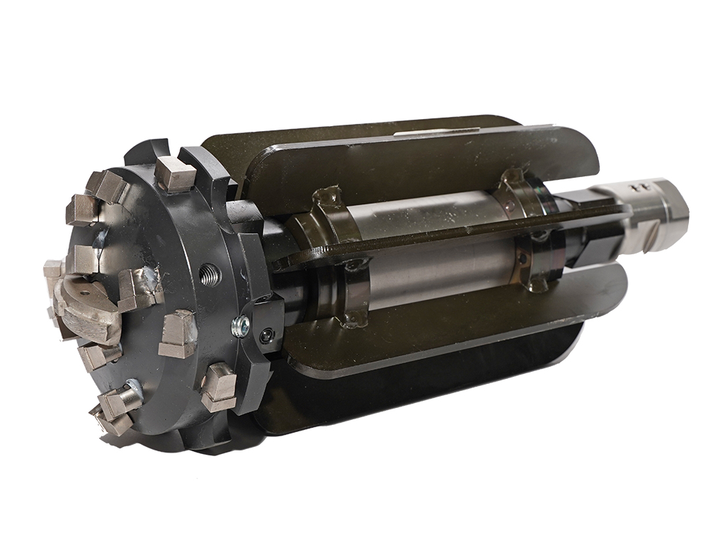 Фрезерная насадка идет в комплекте с твердосплавными сегментами должным образом прикрепленными к корпусу из нержавеющей стали, одним алмазным центровочным сверлом с охлаждающим устройством и алмазными режущими кромками. Кольцо турбины с «плавниками» не только увеличивают крутящий момент, но также обеспечивают возможность движения по прямой.