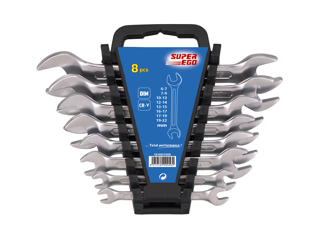 Набор двухсторонних гаечных ключей с открытым зевом 6 - 7,8 - 9,10- 11,12 - 13,14 - 15,16 - 17,18 - 19,20 - 22 мм, в боксе.
