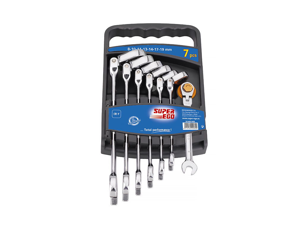 Набор комбинированных ключей с открытыи зевом и трещоткой с шарниром D 8 - 10 - 11 - 13 - 14 - 17 - 19 - 22 мм.