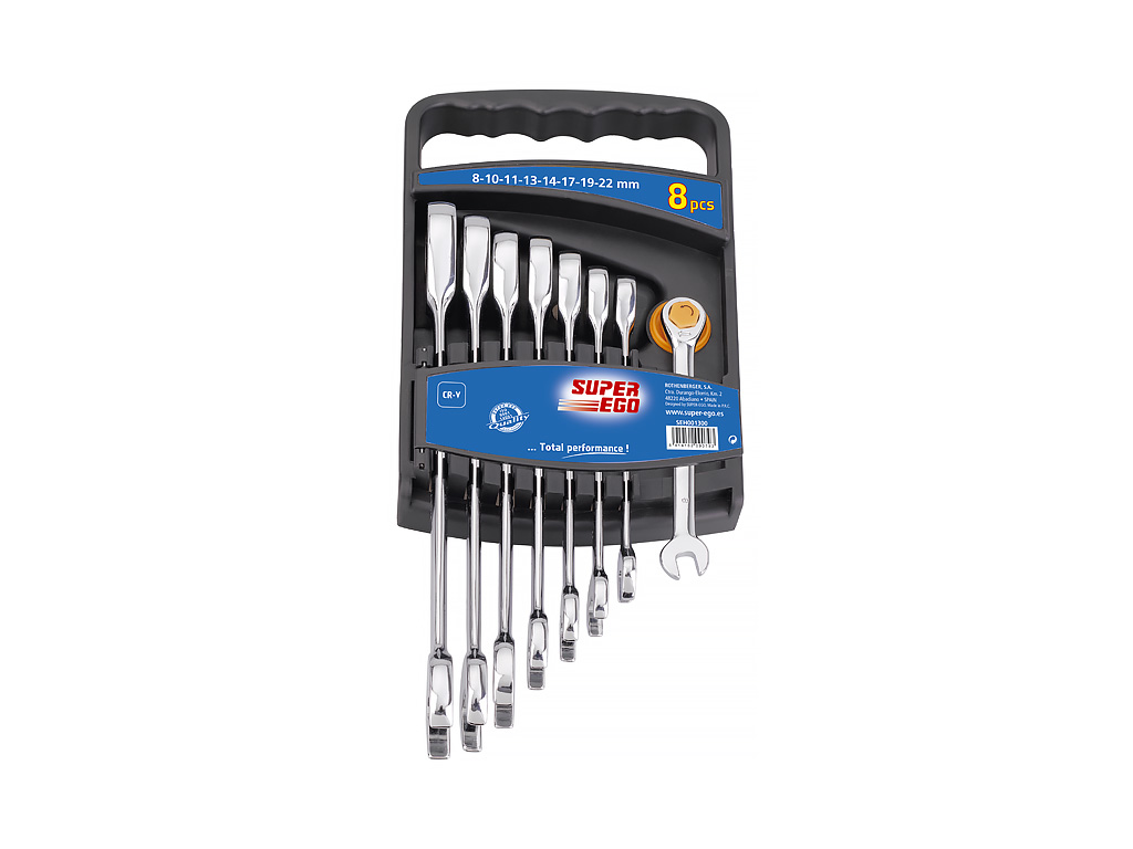 Набор комбинированных ключей с открытым зевом и трещоткой D 8 - 10 - 11 - 13 - 14 - 17 - 19 - 22 мм.